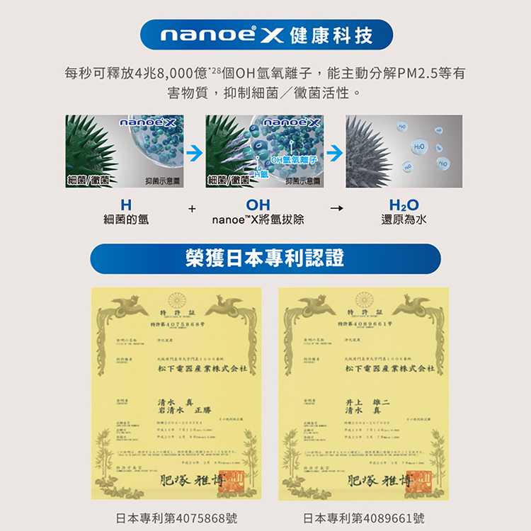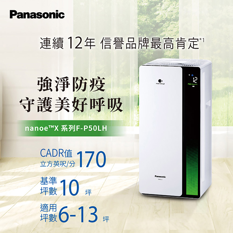 【Panasonic】10坪 nanoeX 空氣清淨機(F-P50LH)