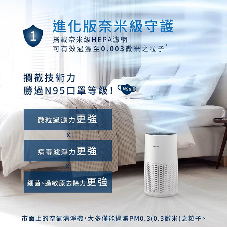 【Philips 飛利浦】奈米級空氣清淨機 12-14坪 (AC1715/80)